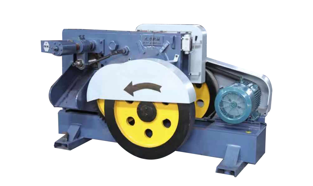 利用三相異步電機驅動偏心軸傳動,由偏心軸傳動帶動連桿,連桿帶動連座,連座將動模刀具一并帶動;定模刀具經固緊螺栓固定在機體上;棒料經送料架進入料口,由于受到動模刀具的橫向剪切力而被剪斷。此外,該機型還設有頂針機構,該機構可以很好的控制的長度。用該機型剪切的圓鋼可以降低加工成本,提高生產效率,加工精度高等優點。